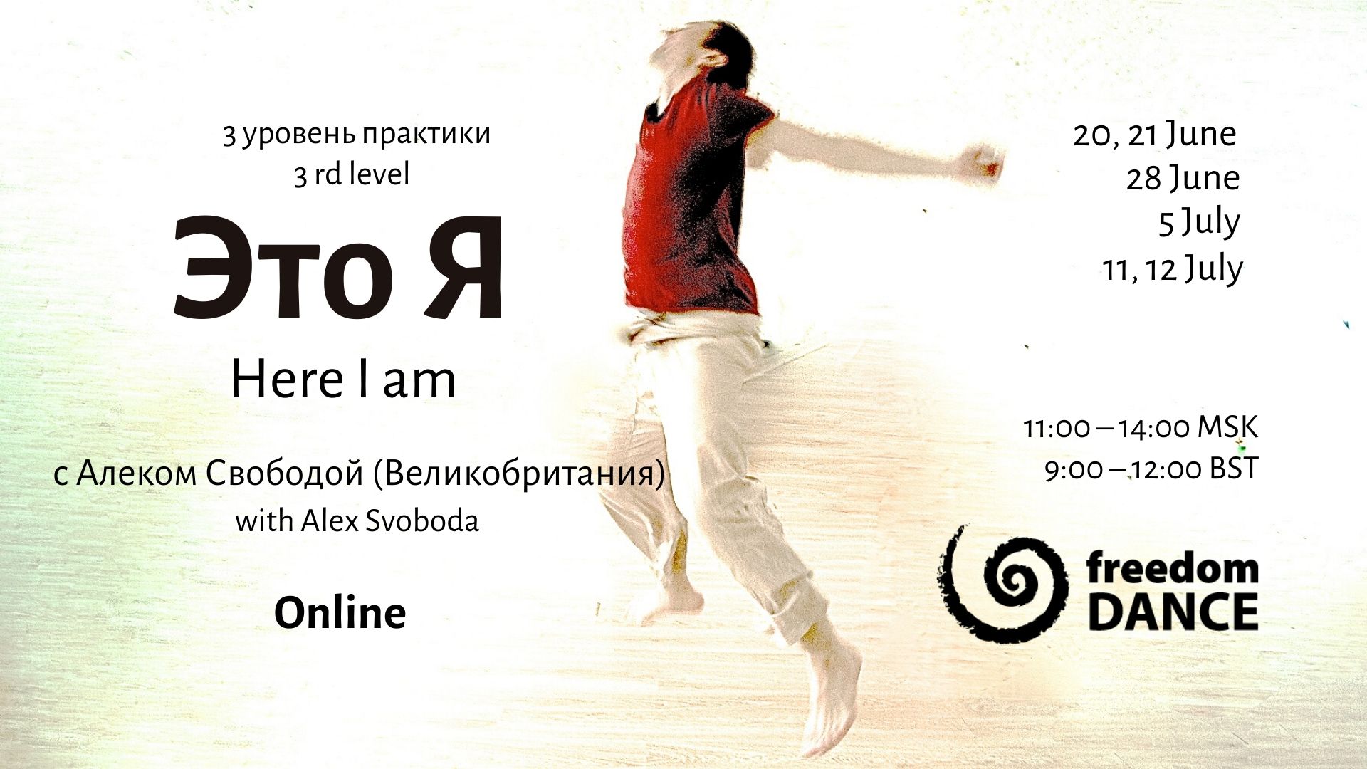 «Это я» – углубленная лаборатория freedomDANCE третьего уровня c Алексом Свободой в формате постоянной группы одним составом участников.